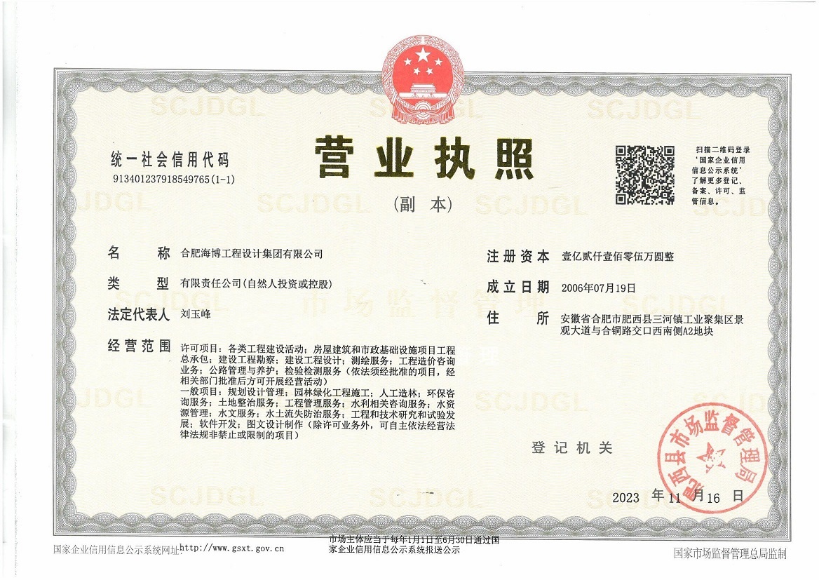 合肥海博工程設計集團有限公司成立于2007年,坐落于合肥市肥西縣經開區延喬路與長古路交口聯海·云創港(建筑面積3.3萬㎡),是業務涵蓋勘察、設計、施工、生態園林、智能建造、地產運營六大領域的綜合性企業,為合肥市首批工程總承包試點企業。