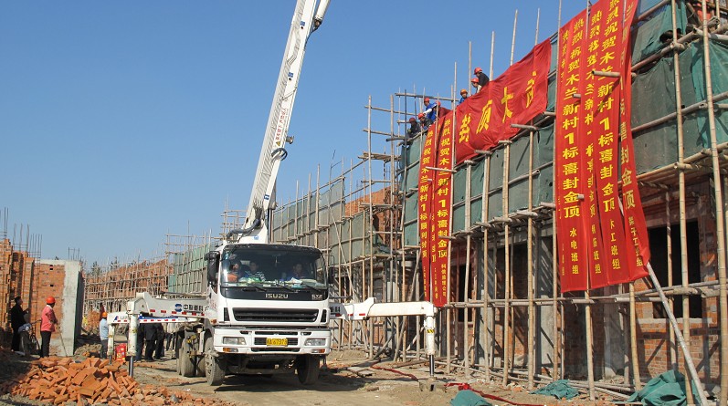 我公司承建的1標段工程涉及農(nóng)戶46戶,建筑面積約6000平方米,造價約400萬元。工期120日歷天。本工程自開工以來,全體參建員工,夜以繼日、加班加點、精心施工,在保證質(zhì)量的前提下緊抓工期,無論質(zhì)量、安全、進度都受到了建設(shè)、質(zhì)監(jiān)、設(shè)計、監(jiān)理及當?shù)厝罕姷暮迷u,工程的順利封頂預(yù)示工程主體工程基本完工,同時也標志著工程建設(shè)重點由土建轉(zhuǎn)向裝飾,我們將繼續(xù)加強管理、精心施工,力保工程整體如期、優(yōu)質(zhì)完工。