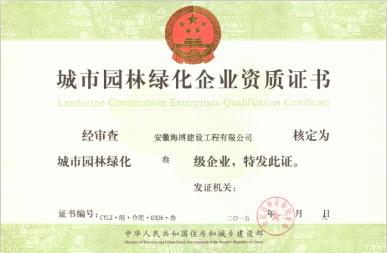 2015年2月17日,值此歲末,新春佳節(jié)之際,又一好消息傳來,我公司申報(bào)的“城市園林綠化叁級(jí)資質(zhì)”獲批。