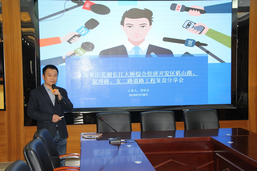 2019年3月29日下午,由發展中心組織的2019年第二場項目復盤分享交流會在聯海集團五樓會議室舉行,本次復盤分享是由周宗兵同志帶來的《蕪湖長江大橋綜合經濟開發區磯山路、泥埠路、支二路道路工程復盤分享》,集團公司各板塊領導及同仁參加了此次會議。