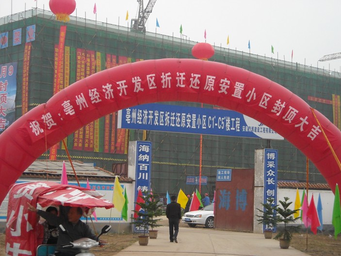 9月9日上午,金秋送爽、丹桂飄香,紅旗招展、鞭炮齊鳴,值國(guó)際(亳州)中醫(yī)藥博覽會(huì)暨第25屆全國(guó)(亳州)中藥材交易會(huì)隆重召開(kāi)之際;我司承建的亳州經(jīng)濟(jì)技術(shù)開(kāi)發(fā)區(qū)拆遷還原安置小區(qū)C1~C5#樓工程順利封頂。